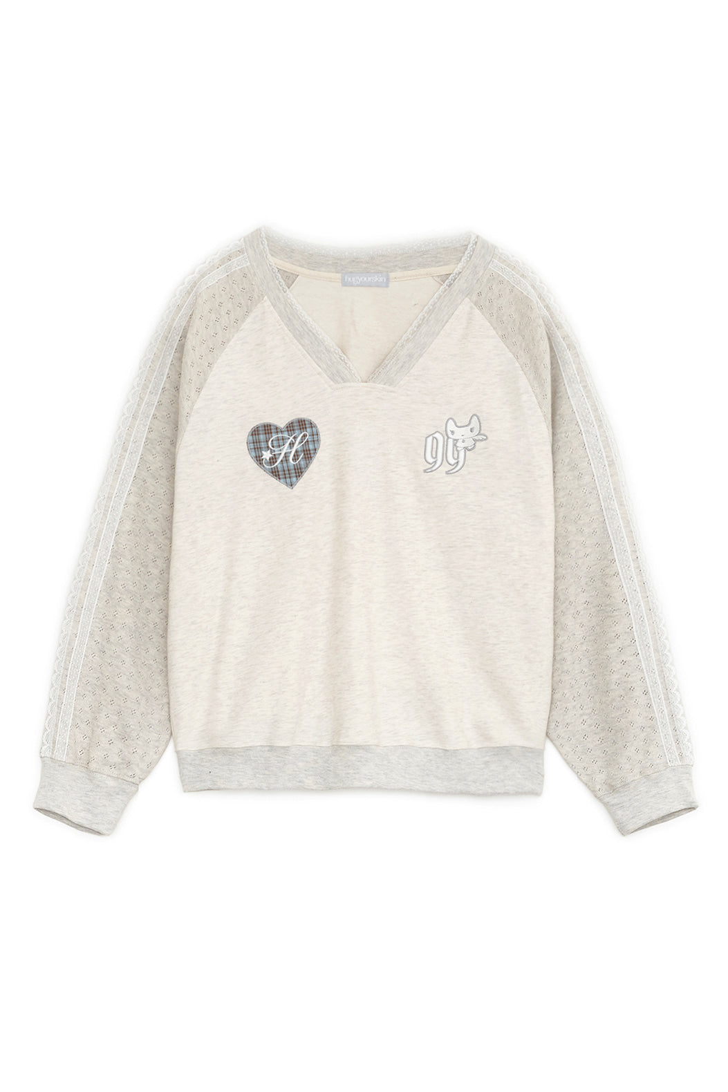 Patch v-neck raglan T (Ivory)